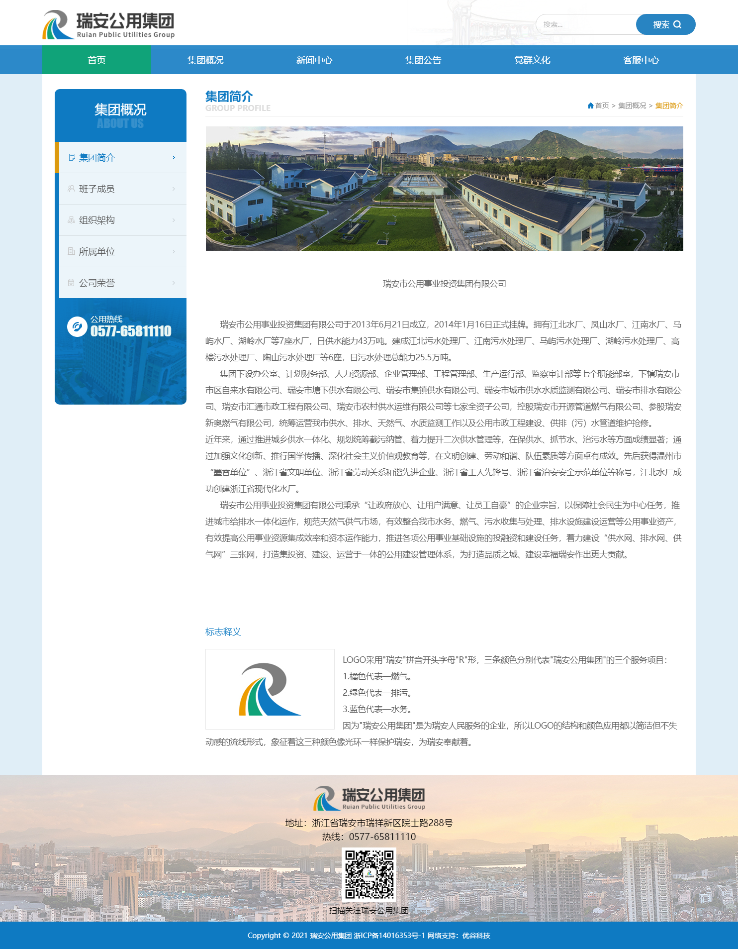 集團(tuán)下設(shè)辦公室、計(jì)劃財(cái)務(wù)部、人力資源部、企業(yè)管理部、工程管理部、生產(chǎn)運(yùn)行部、監(jiān)察審計(jì)部等七個職能部室,下轄瑞安市市區(qū)自來水有限公司、瑞安市塘下供水有限公司、瑞安市集鎮(zhèn)供水有限公司、瑞安市城市供水水質(zhì)監(jiān)測有限公司、瑞安市排水有限公司、瑞安市匯通市政工程有限公司、瑞安市農(nóng)村供水運(yùn)維有限公司等七家全資子公司,控股瑞安市開源管道燃?xì)庥邢薰?、參股瑞安新奧燃?xì)庥邢薰?,統(tǒng)籌運(yùn)營我市供水、排水、天然氣、水質(zhì)監(jiān)測工作以及公用市政工程建設(shè)、供排(污)水管道維護(hù)搶修。